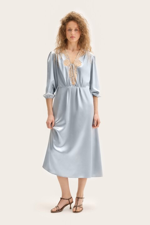 Платье с кружевом Lina голубой
